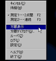 ■ルーペ(拡大鏡)測定中にキーボード「Z」を押すとサブウィンドウにマウスカーソル付近を拡大して表示します。もう一度Zキーを押すとサブウィンドウが閉じます。(右クリックメニューからも選択できます)![]() 拡大率は2〜5倍まで選べます。 オレンジ色の枠をドラッグすることで 位置を変えられます。 (サイズの変更はできません) |