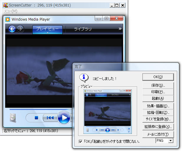 ScreenCutterはWindowsのデスクトップ上に表示されている静止画をハードコピーする目的で作りました。
