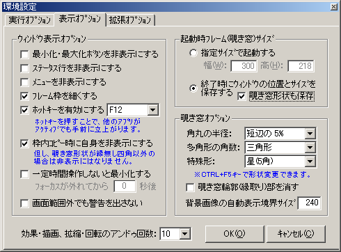 ※「効果・描画」「拡縮・回転」編集時のアンドゥ(やり直し)回数・・・10、20、30、50、100回から選択。