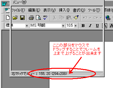 その際、タイトルバーで移動するとメニューの一部が入らないことがあります。そんなときは