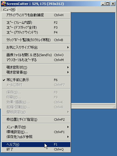 1.ScreenCutterのメニューの「ヘルプ」をクリック。