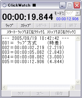 クリックを行う度にスタートとストップが繰り返されます。